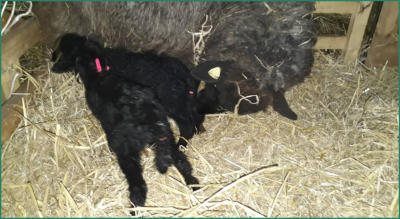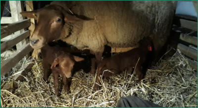 fünfzehn Corburger Auen aus drei Deckgruppen (SAM, JACK und Bundessieger HAIK) lammen.