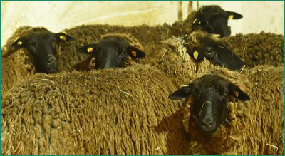 Zuchtgruppe von Rauhwolligen Pommerischen Landschafen zieht ein
